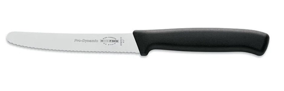 Coltello multiuso della serie ProDynamic, lama da 11 cm con bordo a seghetto, realizzato in acciaio di alta qualità X50CrMoV15 (durezza 56 HRC) e prodotto in Germania.