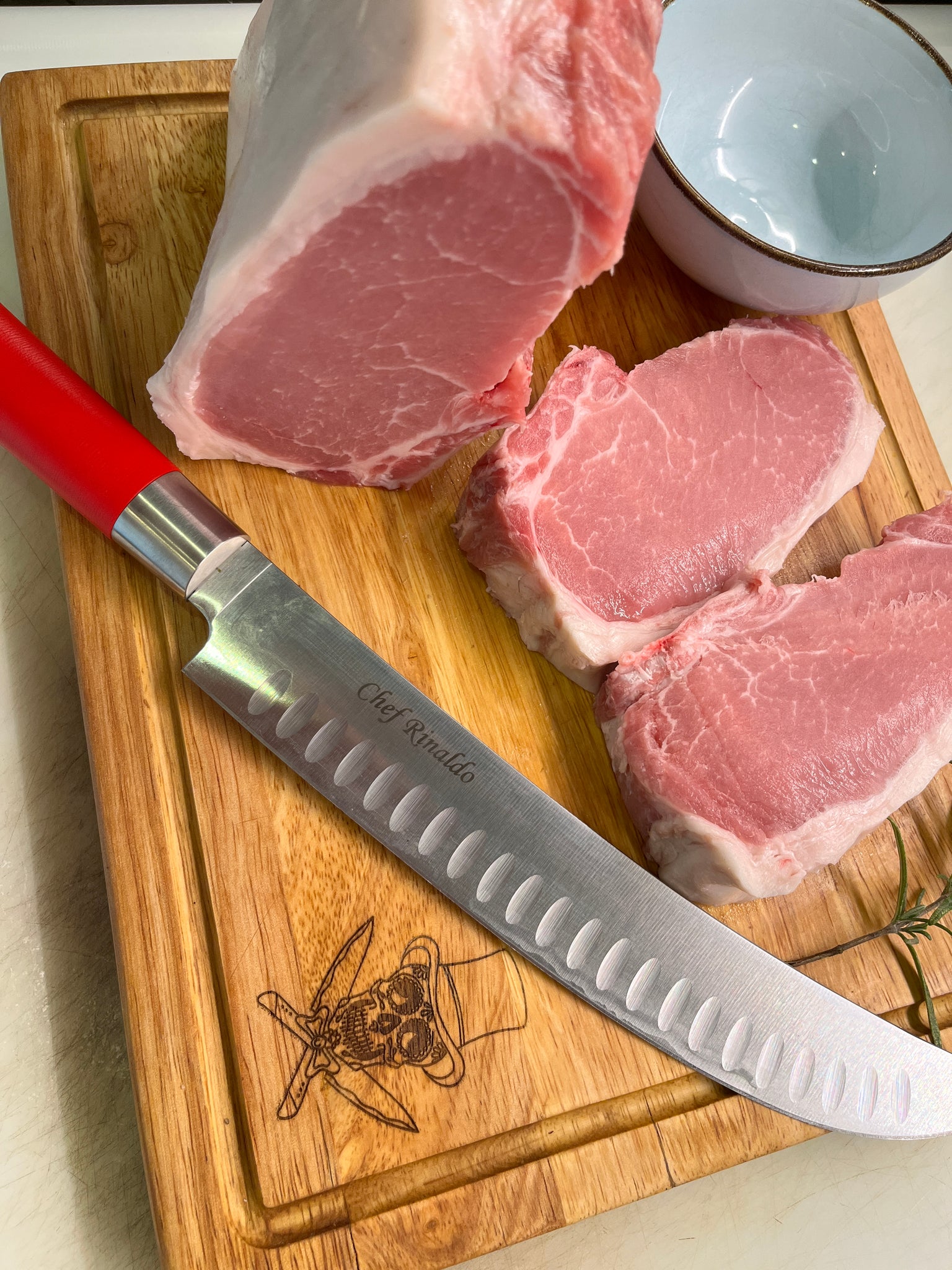 Il coltello è ideale per sezionare grandi pezzi di carne, ma anche un ottimo coltello per tagliar il vostro "brisket" e la vostra Tomahawksteak.