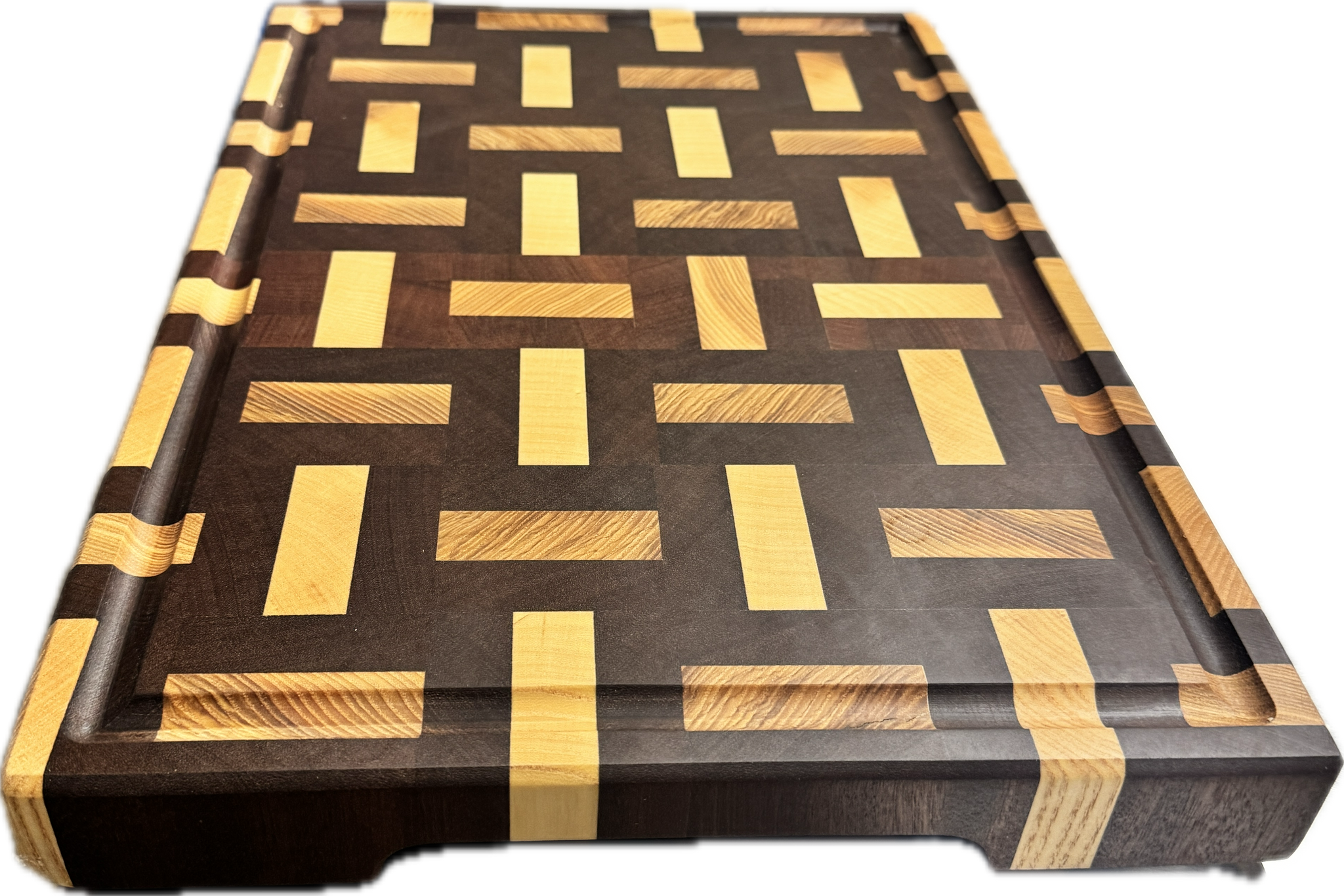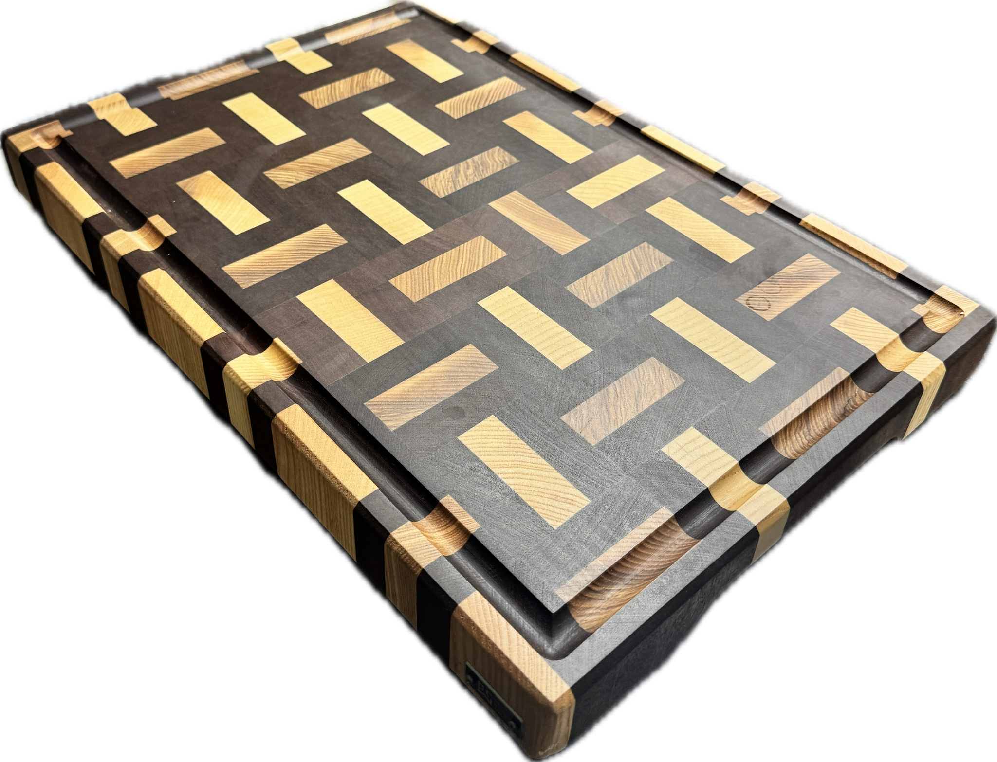 Elegantissimo tagliere in controfibra con 3 legni dure diversi.
